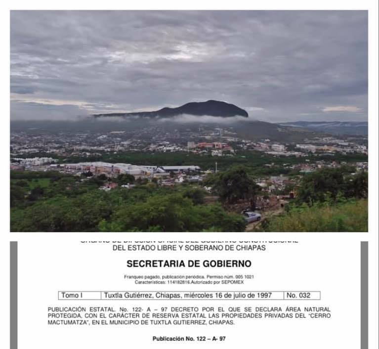 El área natural protegida de carácter estatal "Cerro Mactumatza” fue decretada el 16 de julio de 1997, hace justamente 23 años, siendo gobernador Julio César Ruiz Ferro, secretario de Ecología, Recursos Naturales y Pesca, Froilan Esquinca Cano y su servidor subsecretario.